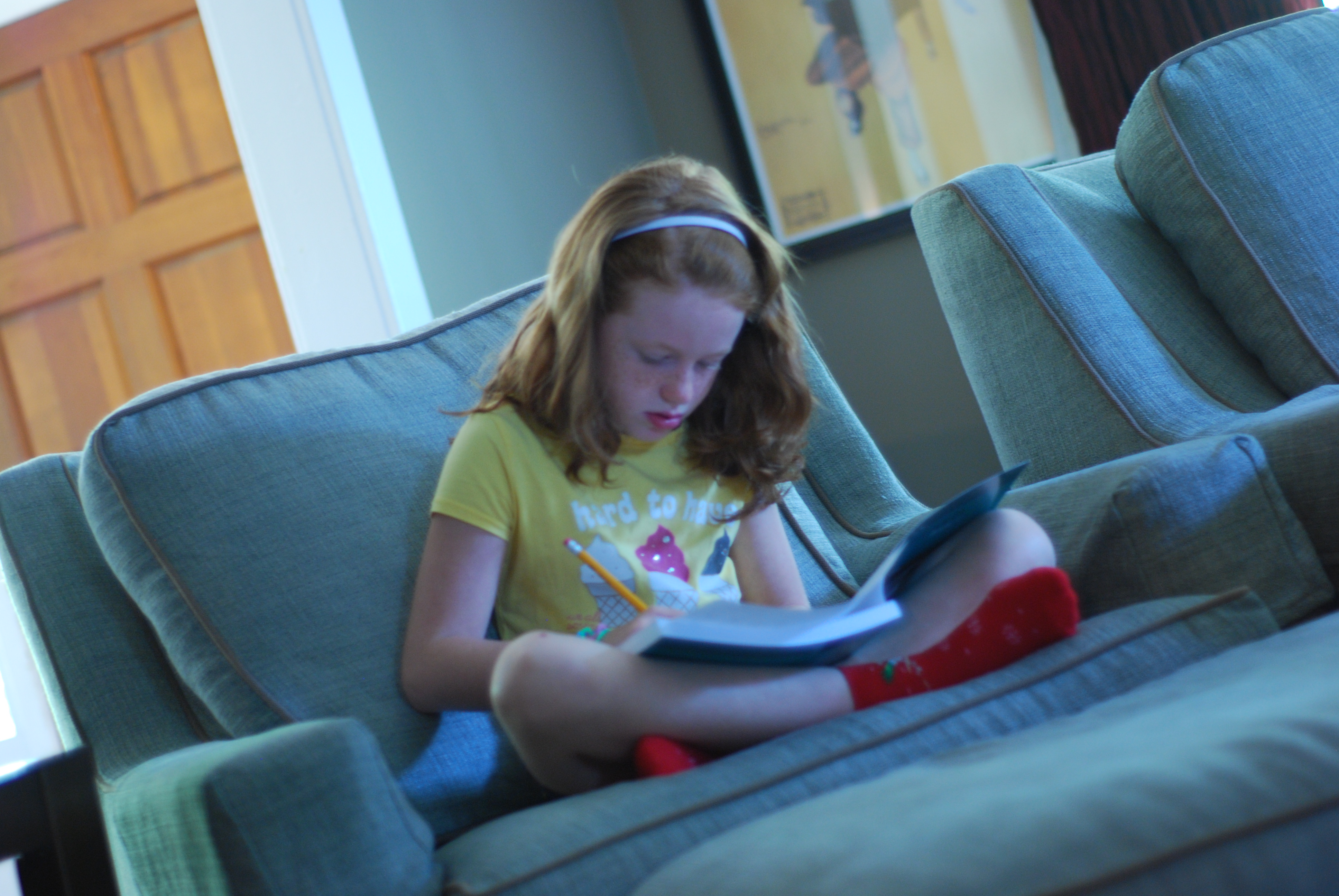 The first born is always “born old” I believe. She’s always been more mature, more responsible, a little more serious. She’s a funny combination of her father and me. She has my desire for order, organization, and neatness. She has her father’s propensity for teasing, his natural ability to be responsible with money, and, of course, his hair. She is one hundred percent girl, yet loves the outdoors and bugs and, of course, the environment. Ahem. 😉 She is smart and funny and strong. She is a rock in so many ways, just like her dad. And I love that about her. She makes my job surpassingly simpler as I know that I can count on her to do whatever I ask, even though it may not always be done cheerfully. She leads her sisters well and they all look up to her.