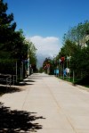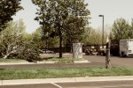As we wait, we see a couple of school buses come out, full of children. This is not a good sign. After a few more minutes, a couple of cars give up and turn back. A couple of other cars go in through the open Exit gate to see what’s going on. We follow them.
